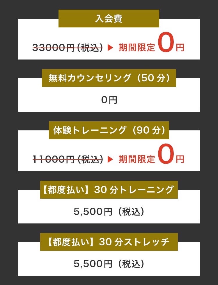| 【都度払い】30分トレーニング | 5,500円 |