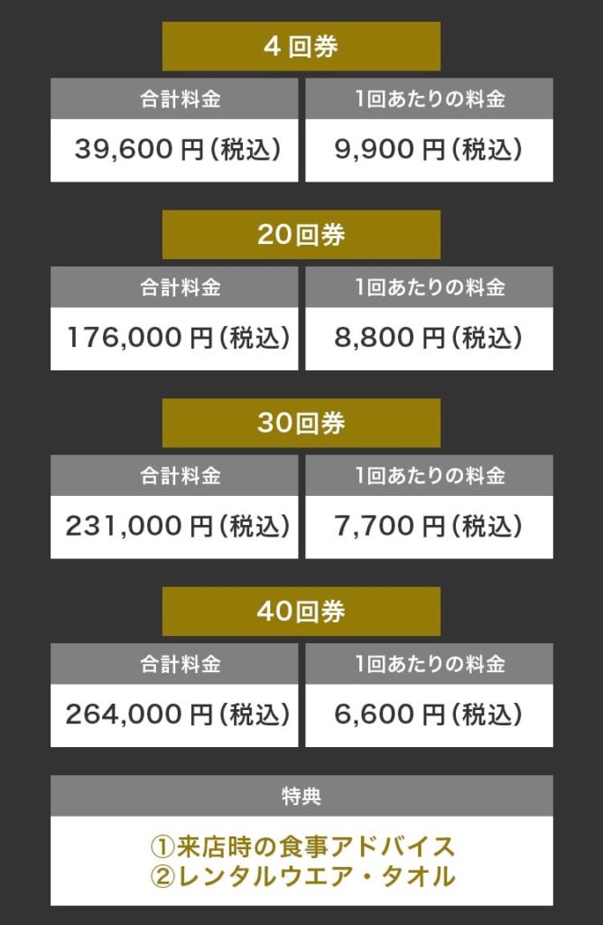 | 4回券 | 39,600円 | 9,900円 |